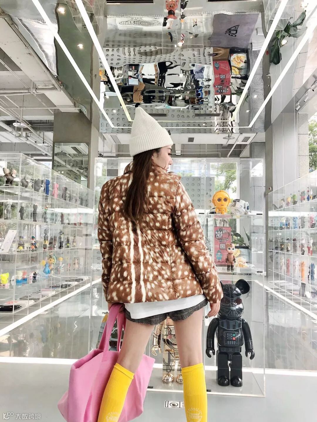 羽绒服搭配鹿的纹路,上身效果又是增加回头率的一件爆款。