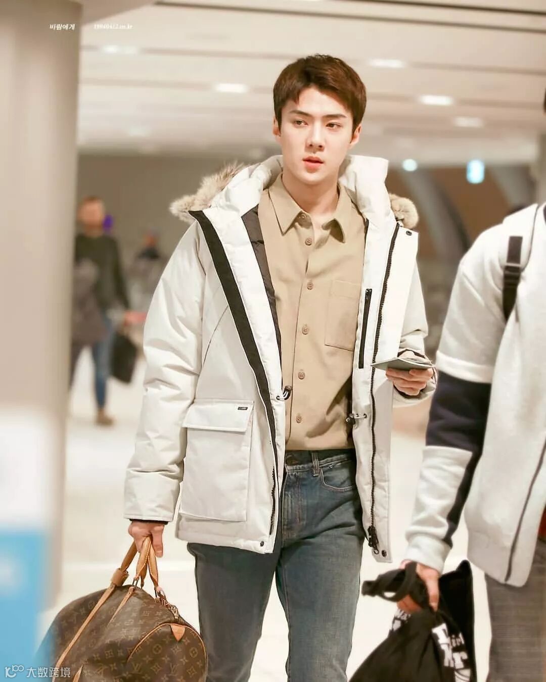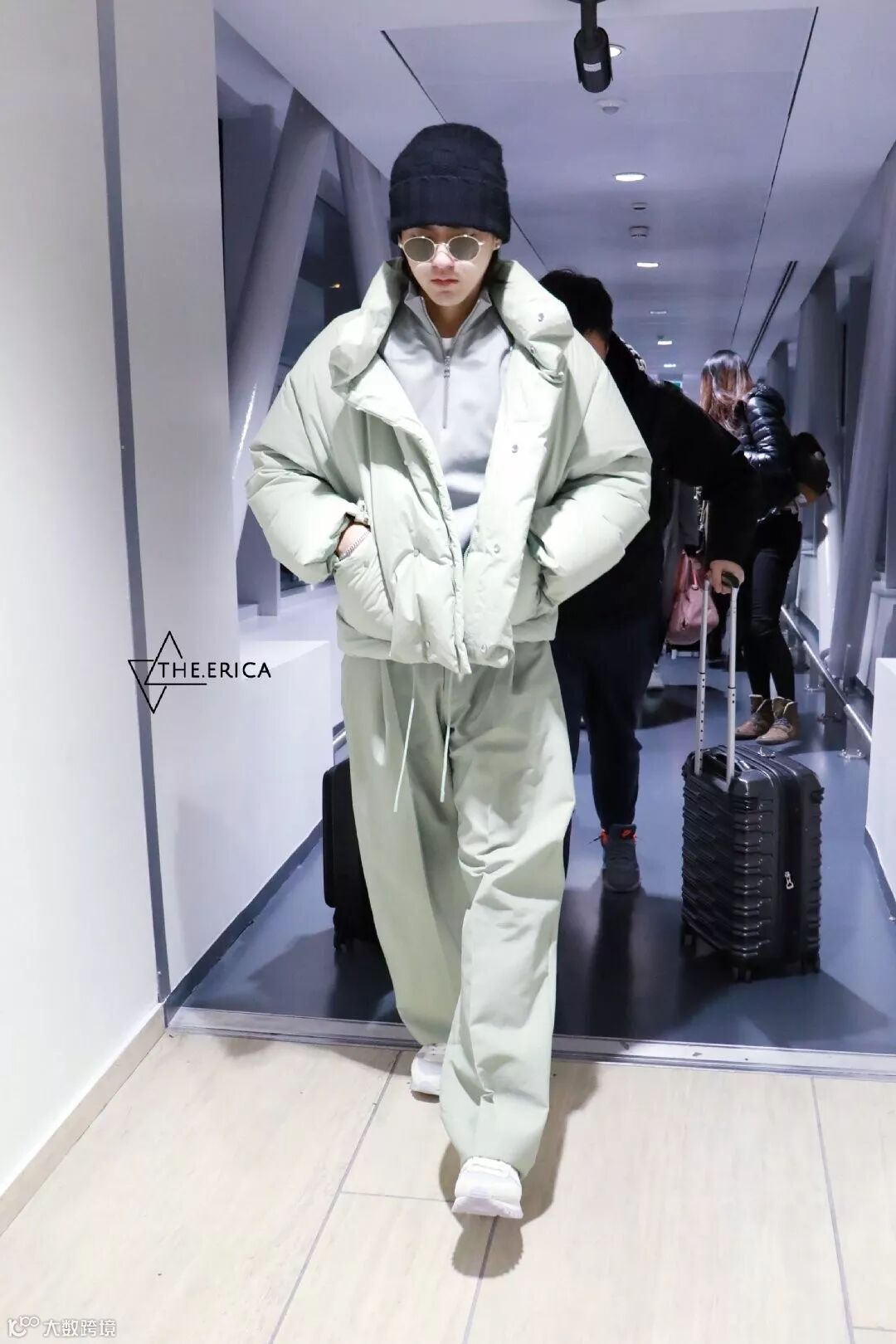 吴亦凡机场身穿2019新款牛油果配色羽绒服