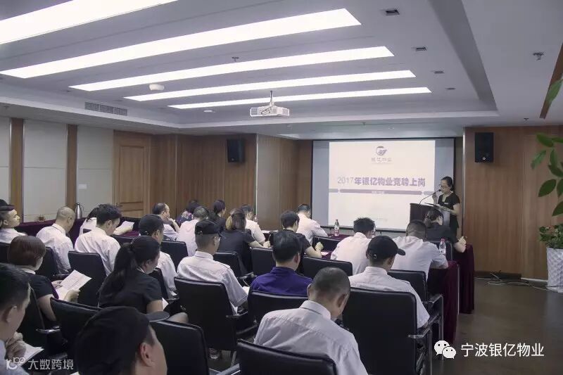 昨日,银亿物业在公司本部成功召开了“2017年银亿物业竞聘上岗会”。公司高层领导、相关项目负责人出席了本次竞聘大会。来自伊顿国际、宁波电网中心、大众广场等几十个项目的优秀员工,积极参与竞聘,展现了银亿物业员工良好的工作态度和工作激情。