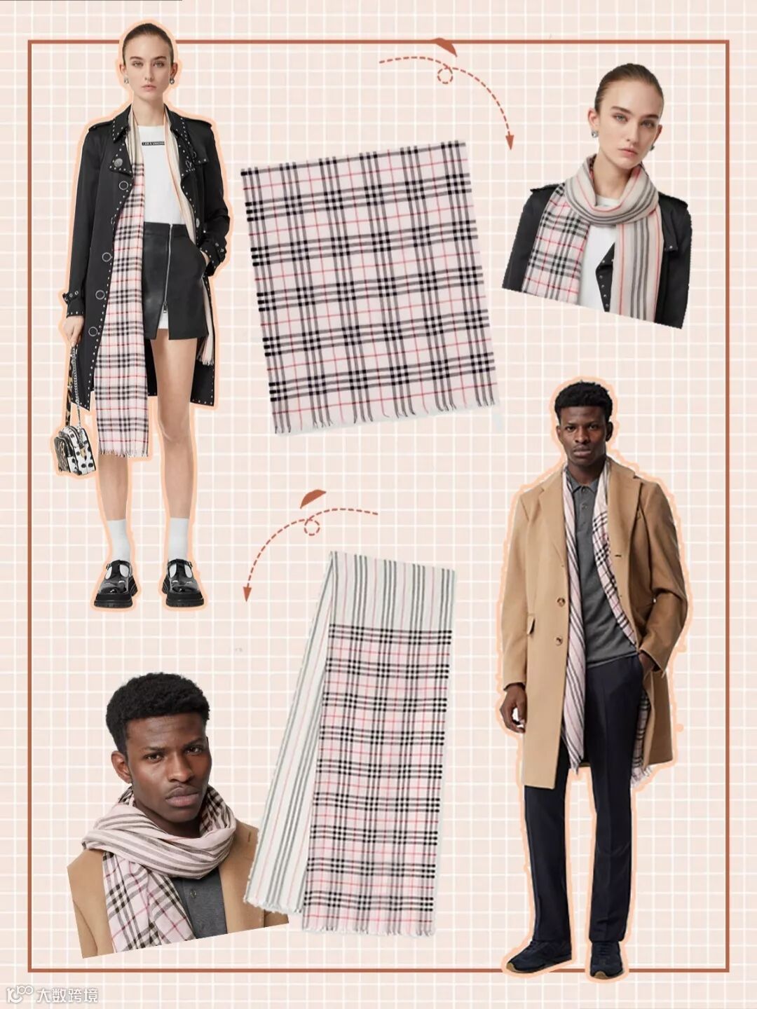 Burberry也慢慢开始把自己logo印在围巾上,但还是比不过它已成经典的格子围巾,百搭必备,永远不会过时!
