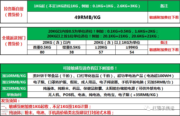1、以下价格为人民币报价(普货价),敏感货请查看附加费哦~