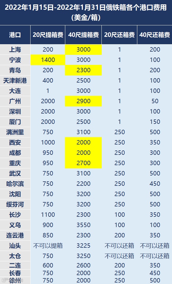 关于2022年1月俄铁箱提箱费变更的通知(三)
