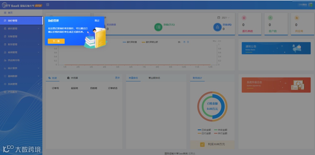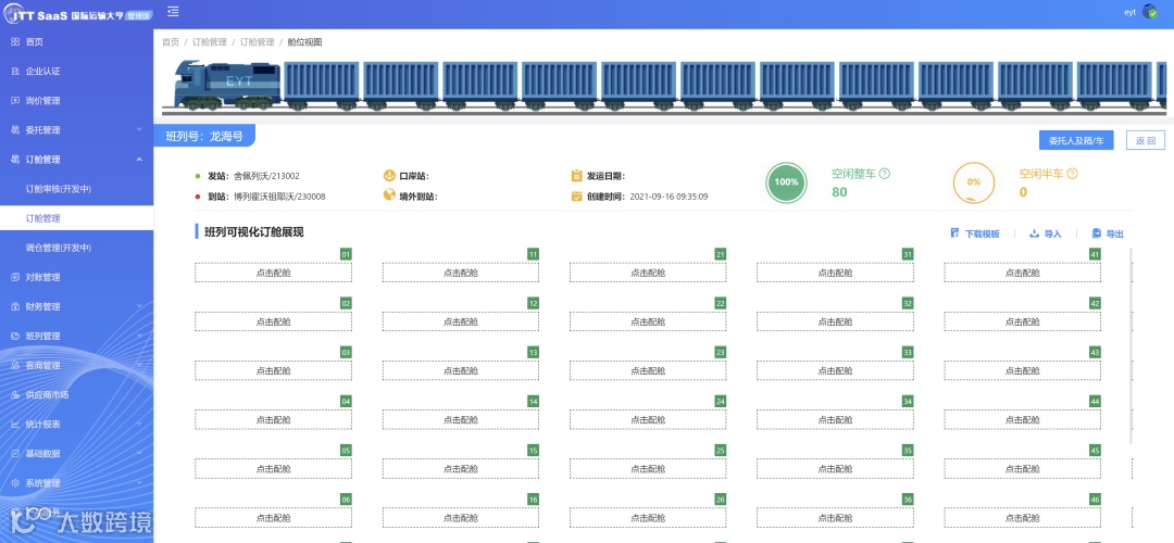 跨境货代云管理平台是一套面向跨境货代企业、中欧班列运营公司提供跨境汽运、铁路、海运、航空及多式联运标准化业务管理,打通产业上下游链条实现业务协同的跨境货代SaaS云管理平台,致力于构建 “一键下单、一单到底、一网跟踪”跨境物流云管理平台。