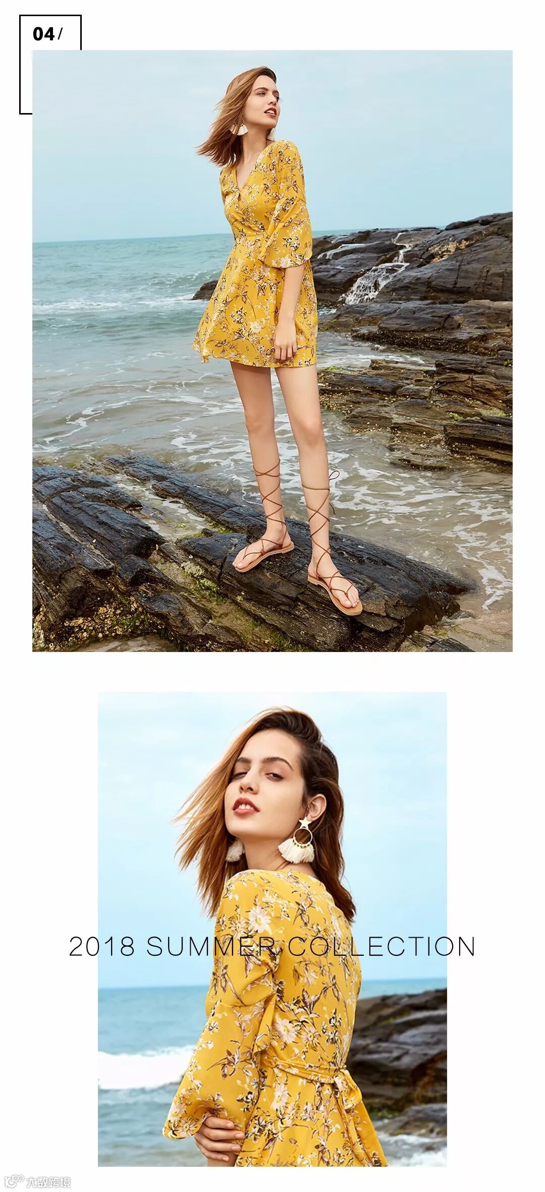 黄色印花长裙,