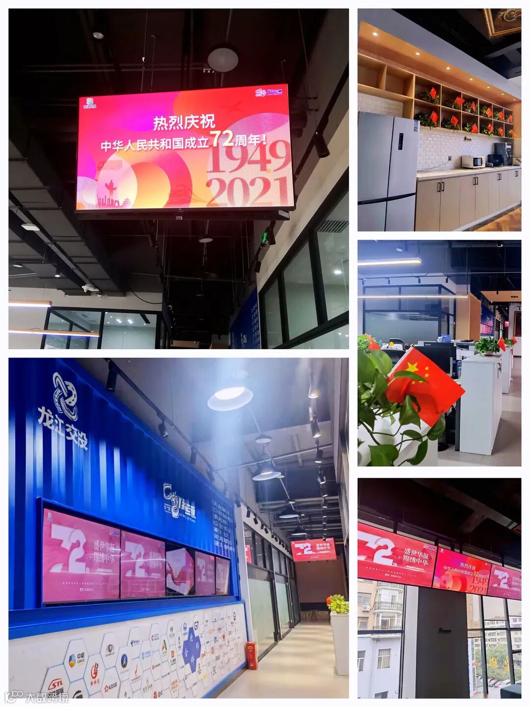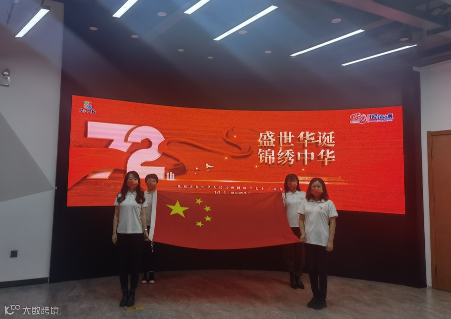俄运通公司精心策划和组织节日布置活动,在公司一楼大屏和四楼办公区多媒体屏幕上播放以“庆祝中华人民共和国成立72周年”为主题的节庆氛围图片,办公区各处工位都插满了象征着浓浓爱国情的小国旗,每一处中国红都是流动的热情和感动,俄运通洋溢着一派欢乐、祥和的美好氛围。