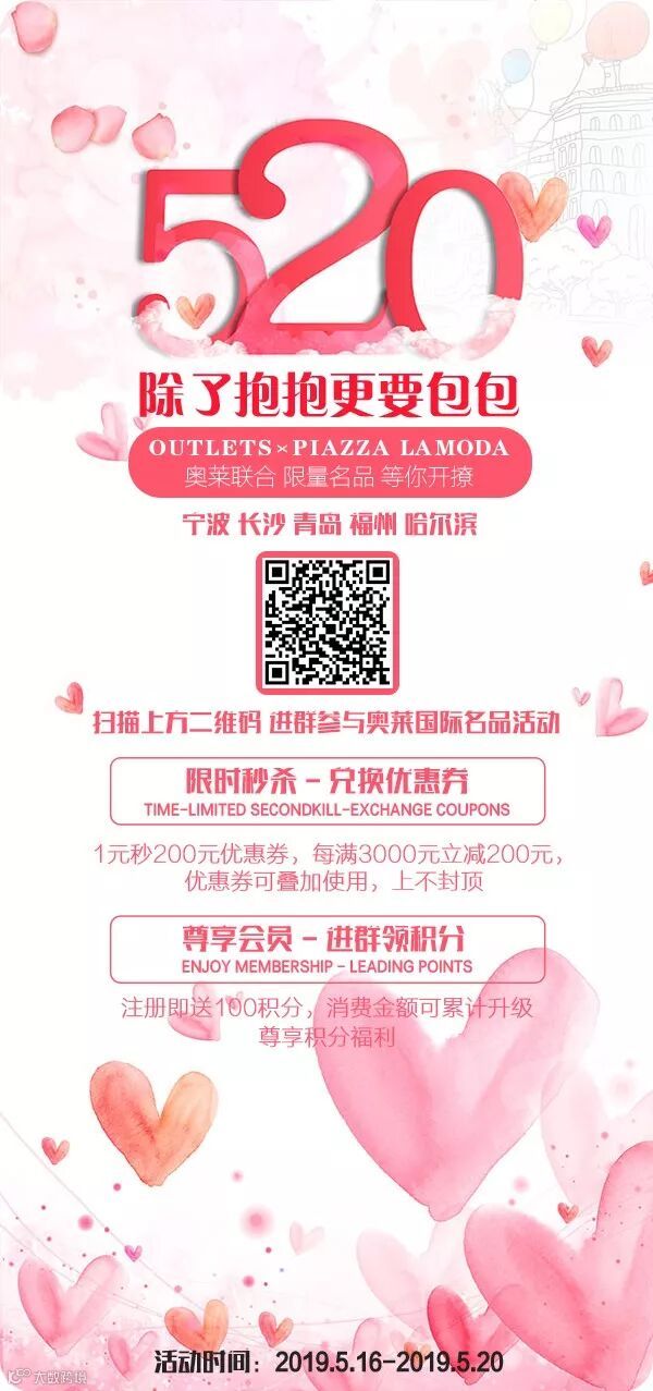 顺便提醒一下,今天可是PIAZZA LA MODA520表白节的最后一天~还没有参与的朋友们,赶紧扫描海报下方二维码,在浪漫的520表白之际,送一款包包给你心爱的她,用你的实际行动让她感受到你浓浓的爱意吧~~~