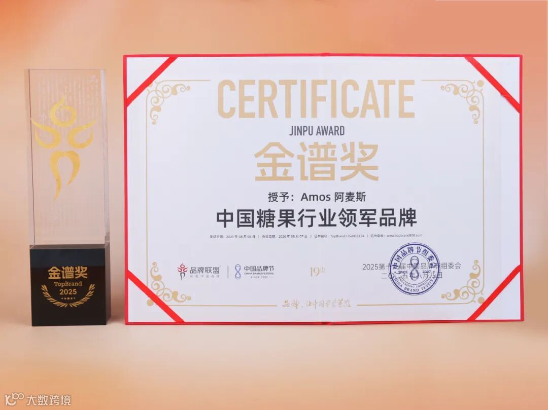(Amos阿麦斯创意糖果品牌荣获“2025中国品牌节金谱奖·中国糖果行业领军品牌”、