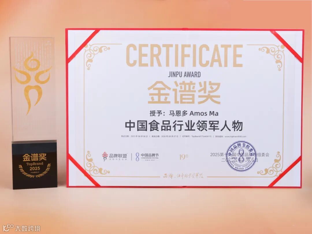 金多多食品集团三大奖项荣耀加冕,全面展现集团品牌力、产品力与全球化视野。金多多食品董事长Amos Ma马恩多先生凭借在糖果行业持续20余年的深耕布局与品牌全球化战略视野,荣获“中国品牌节金谱奖·中国食品行业领军人物”称号。Amos阿麦斯创意糖果品牌获“2025中国品牌节金谱奖·中国糖果行业领军品牌”、“TopBrand2025中国出海品牌100强”两项重磅大奖。以创新+研发驱动品牌发展,以快乐与健康惠及全球,马恩多身体力行将“做世界的甜蜜使者”融入企业精魂,为中国品牌的崛起与发展谋势蓄力。