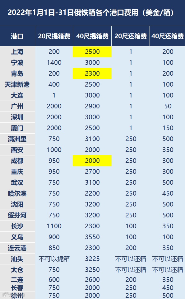 关于2022年1月俄铁箱提箱费变更的通知(一)