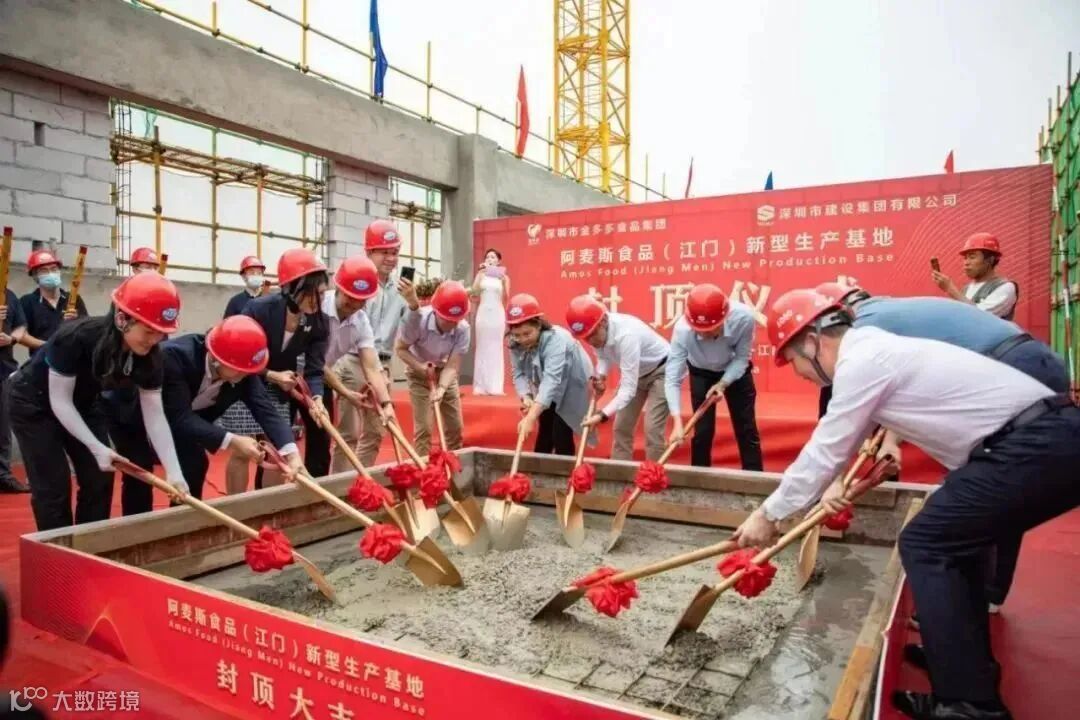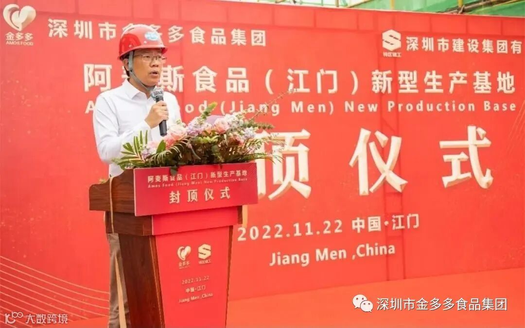 2022年11月22日,金多多食品集团旗下的阿麦斯食品江门生产研发基地封顶仪式顺利举办。这是继深圳市、东莞市生产中心之后金多多食品的第三家生产基地。该基地占地50亩,建筑面积11.6万平方米,规划10万级洁净生产车间,未来将打造为一座集生产、研发、供应链管理、工业文旅多功能一体化的大型综合生产研发基地。江门市江海区经促局局长黄伟雄先生、江门市江海区礼乐街道书记何淑娴女士、金多多食品董事长马恩多先生、金多多食品生产中心总经理马红帆先生、深圳建设集团等相关领导及嘉宾出席仪式,共同为新基地浇筑最后一方混泥土。江门生产研发基地建设,代表着金多多食品将进一步推进食品安全体系、生产管理体系、产品研发体系、可持续化供应链发展体系的四大产品运营体系的全方位建设,夯实品牌全球化发展产品基石。