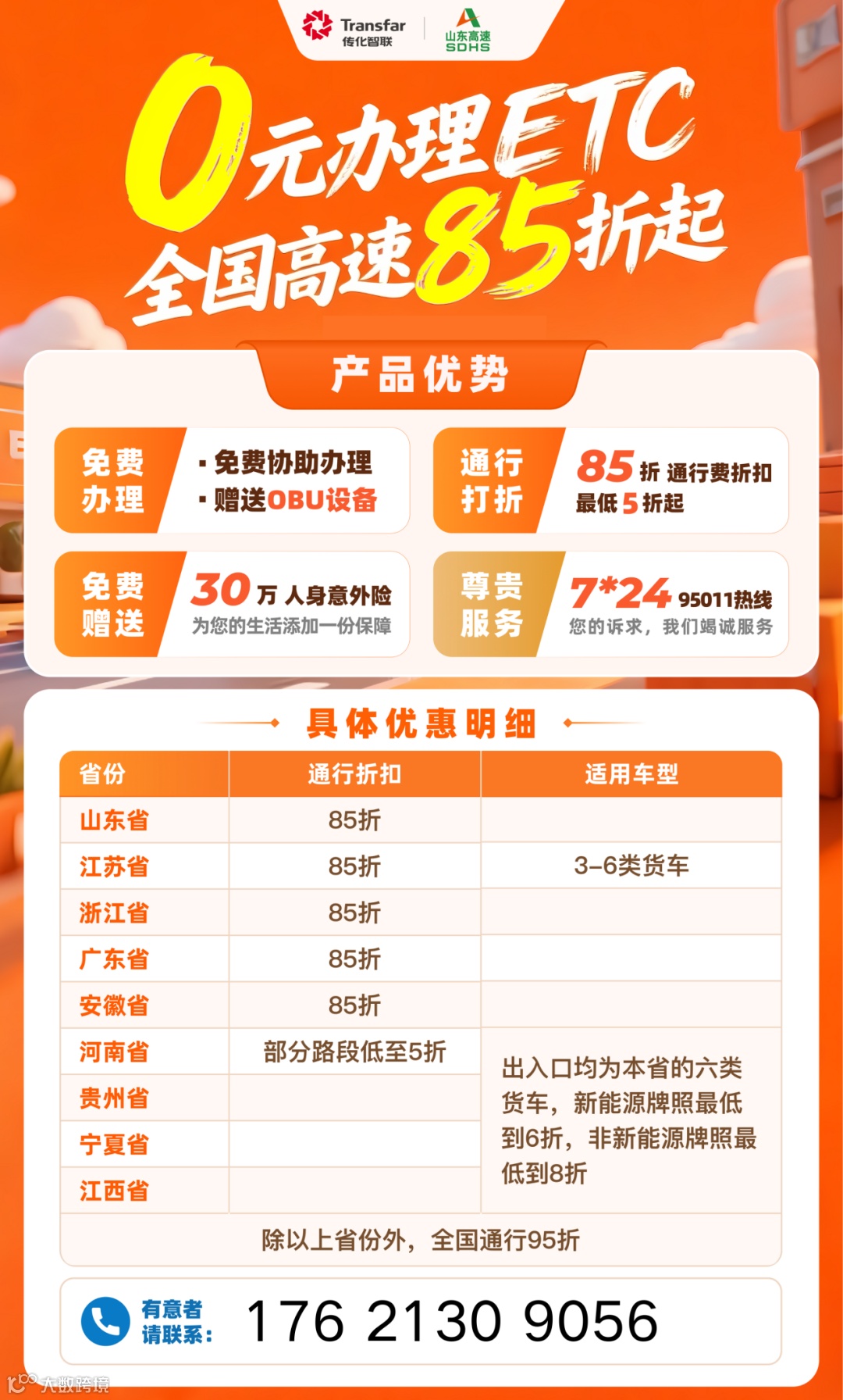 2、通行打折 全国通行85折,最低5折起
