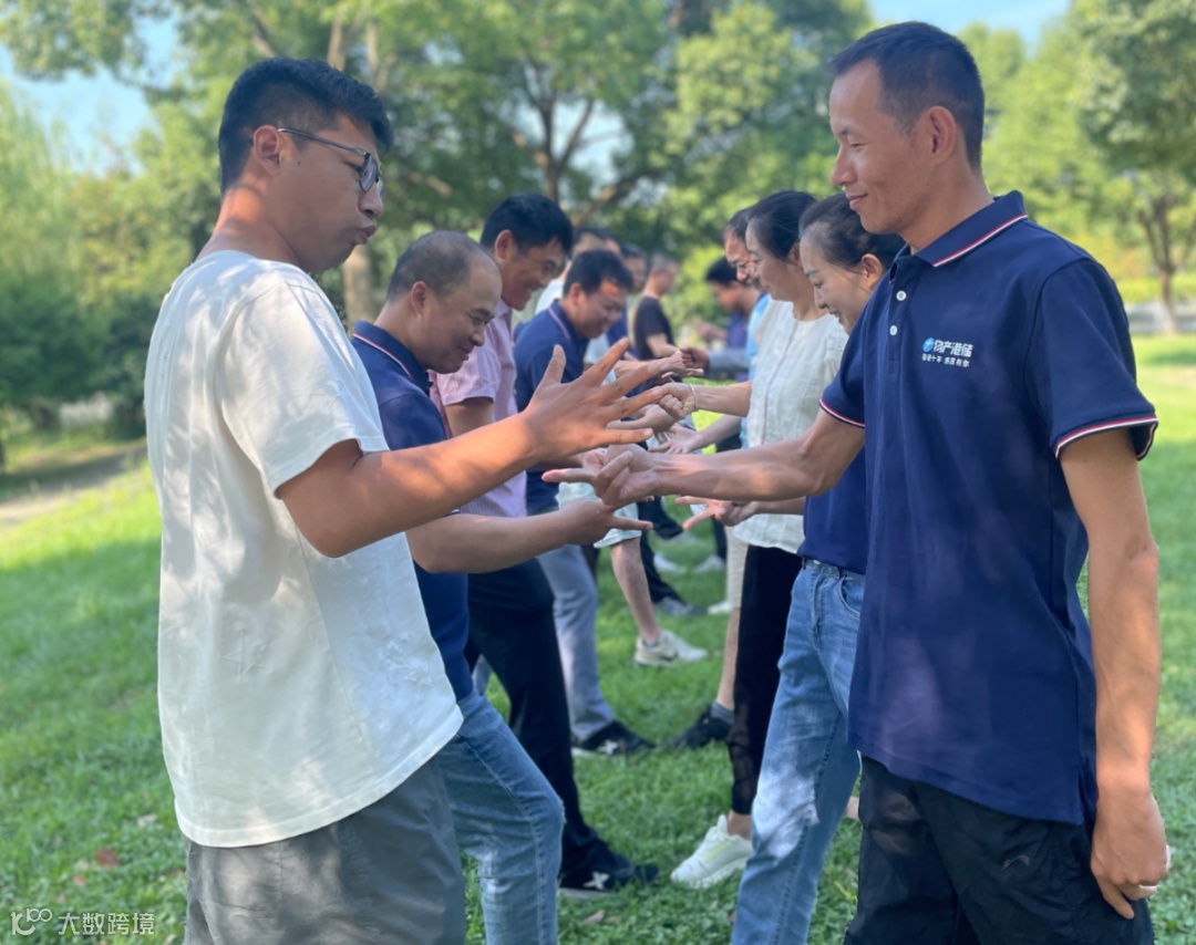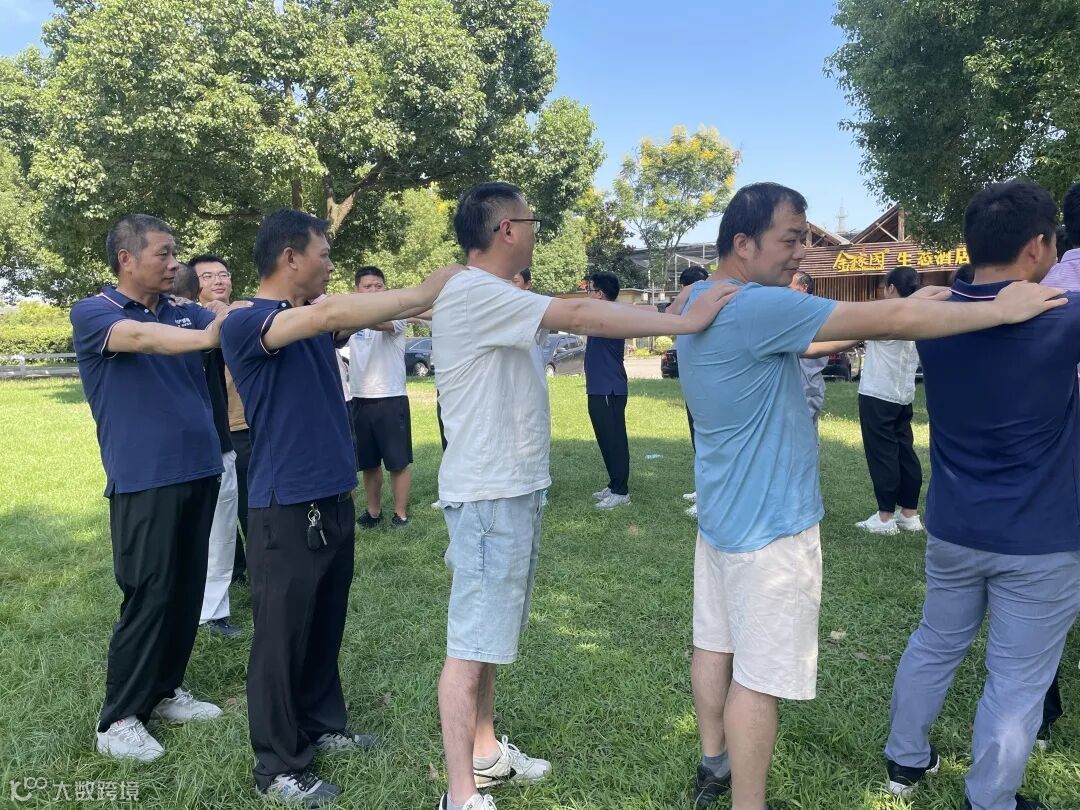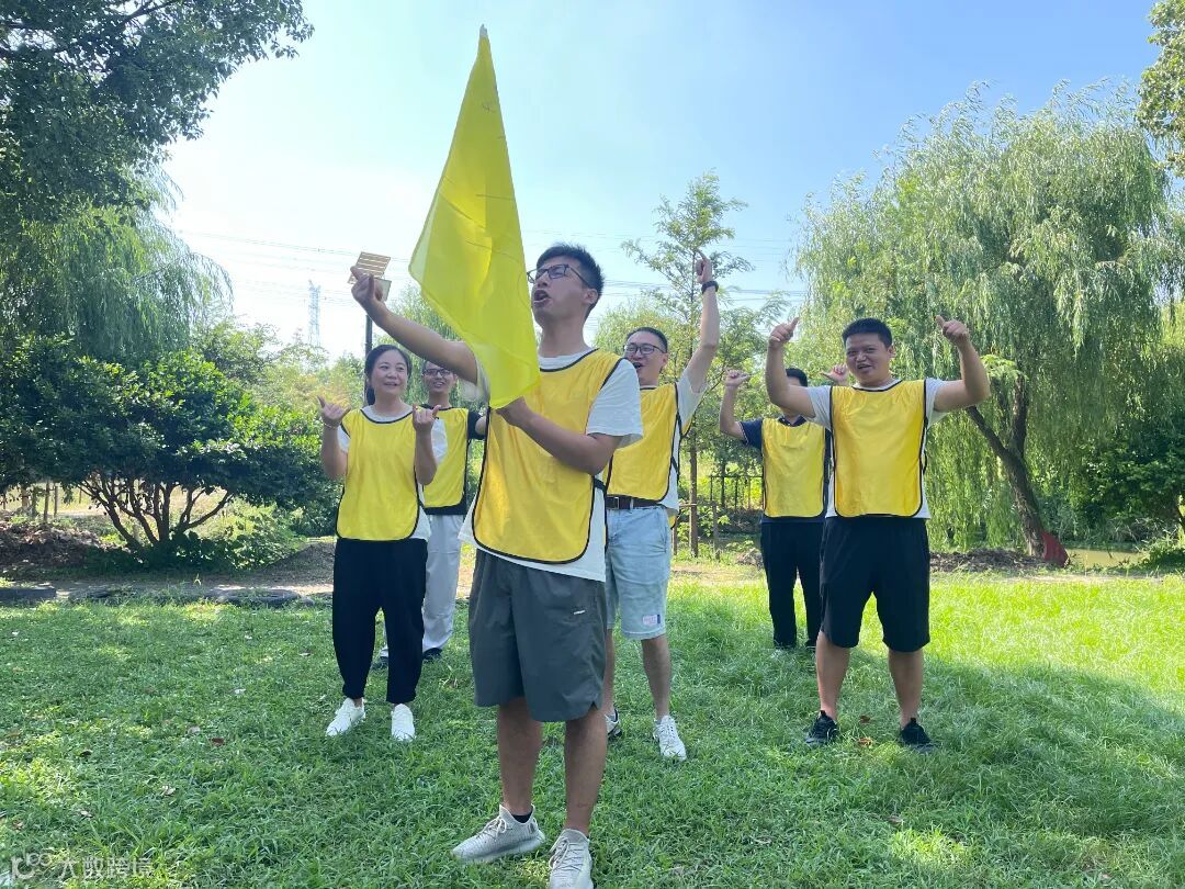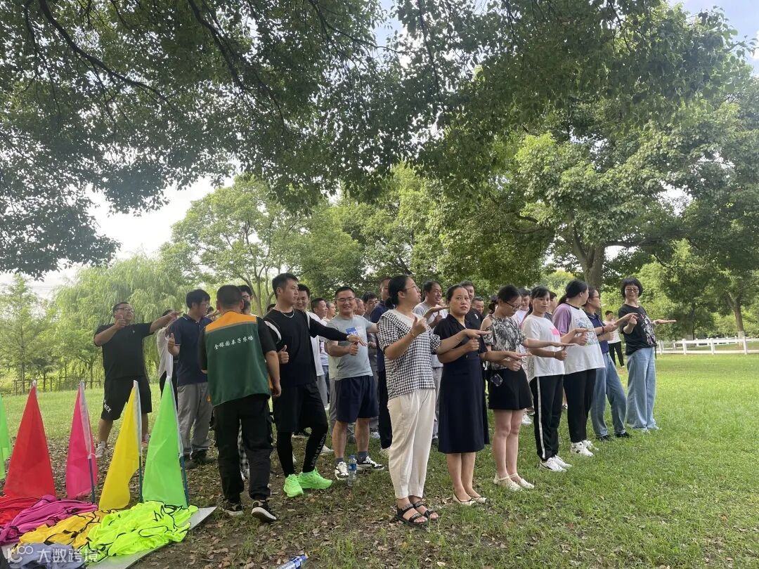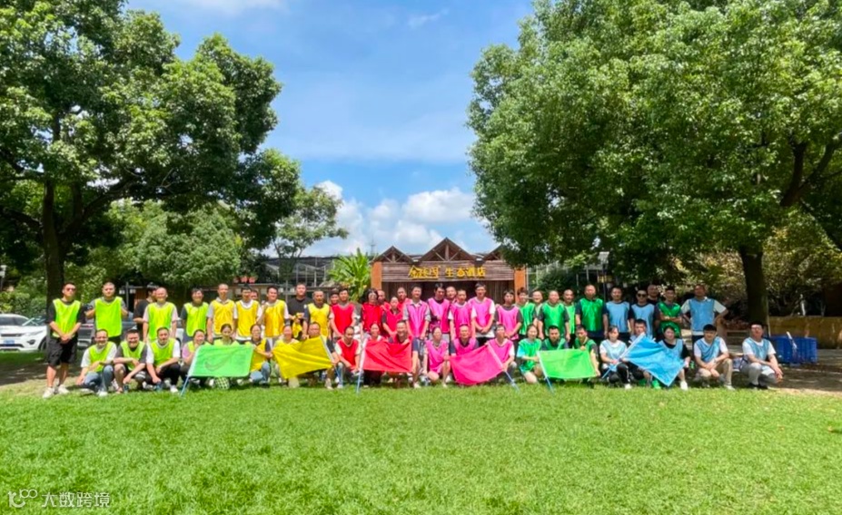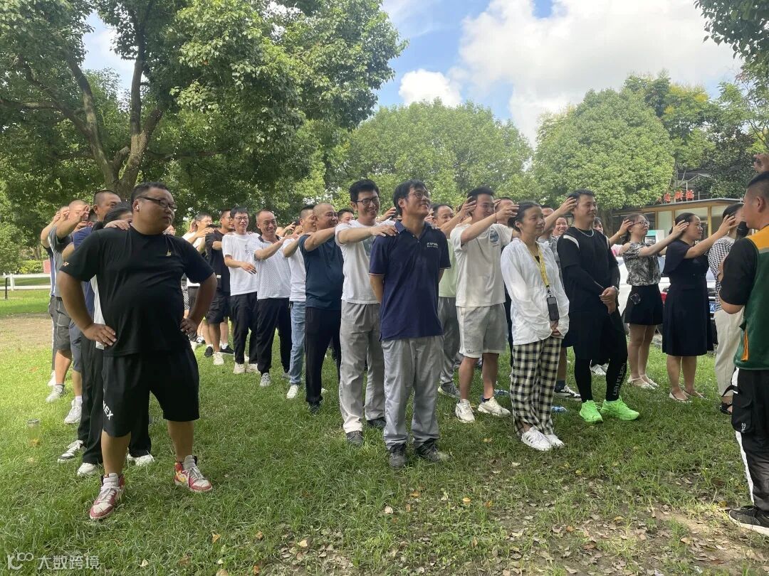 上午的户外拓展活动在互相配合与竞技中进行,员工们分组组建团队、设置队名、LOGO和队姿,依次进行破冰游戏、急速60秒、挑战五分钟等拓展项目。