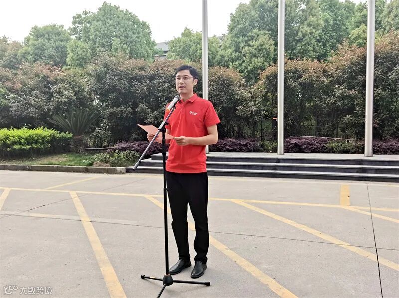 4月18日上午,杭州传化公路港南门广场升旗台前,三名护旗手踏着矫健的步伐,精神抖擞地抬着五星红旗入场,伴着庄严高亢的《义勇军进行曲》,国旗缓缓升起,全体人员庄严肃立,齐唱国歌。浙江大区兼杭州公路港总经理傅建烽带领全体员工举行公路港启航20周年升旗仪式,激励全员继往开来,守正创新,勇毅前行。