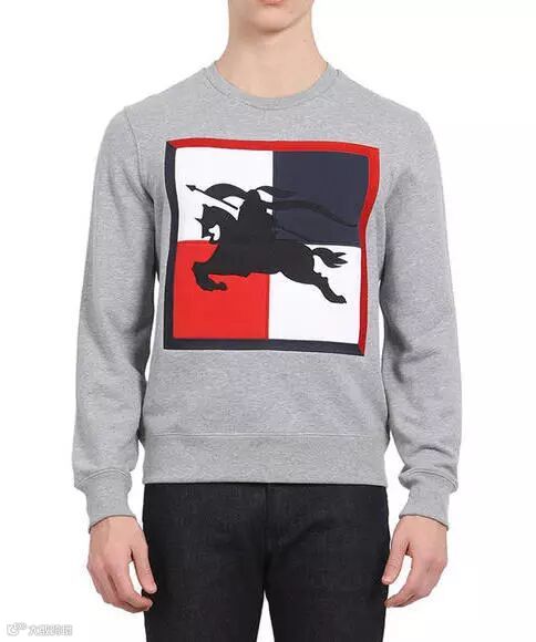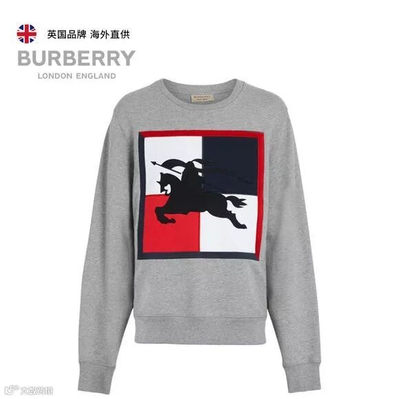 浅麻灰色格纹马术骑士图案棉质卫衣