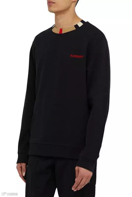 典藏条纹装饰棉质黑色运动衫卫衣