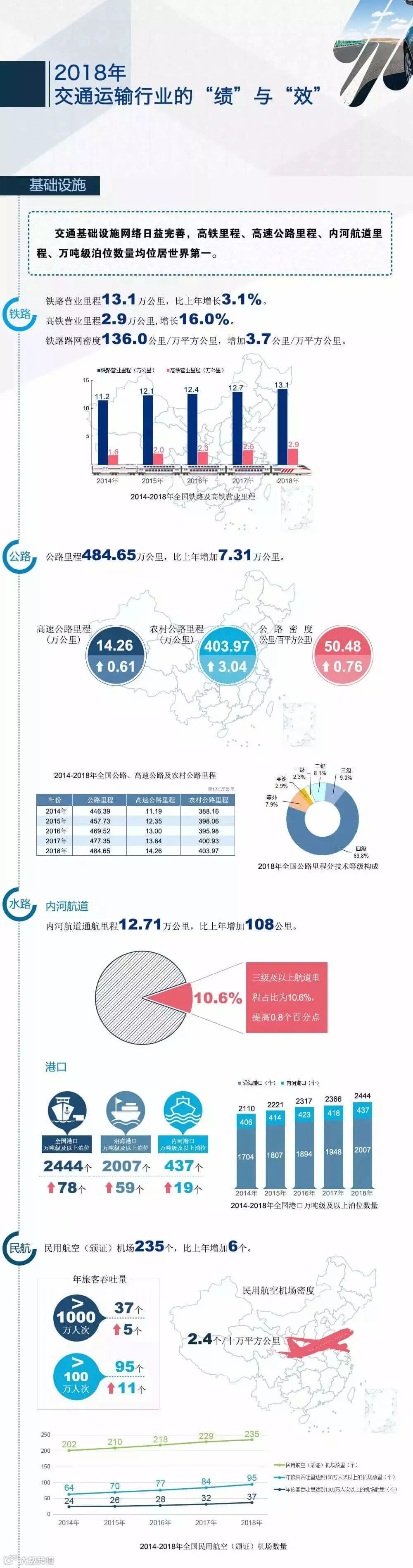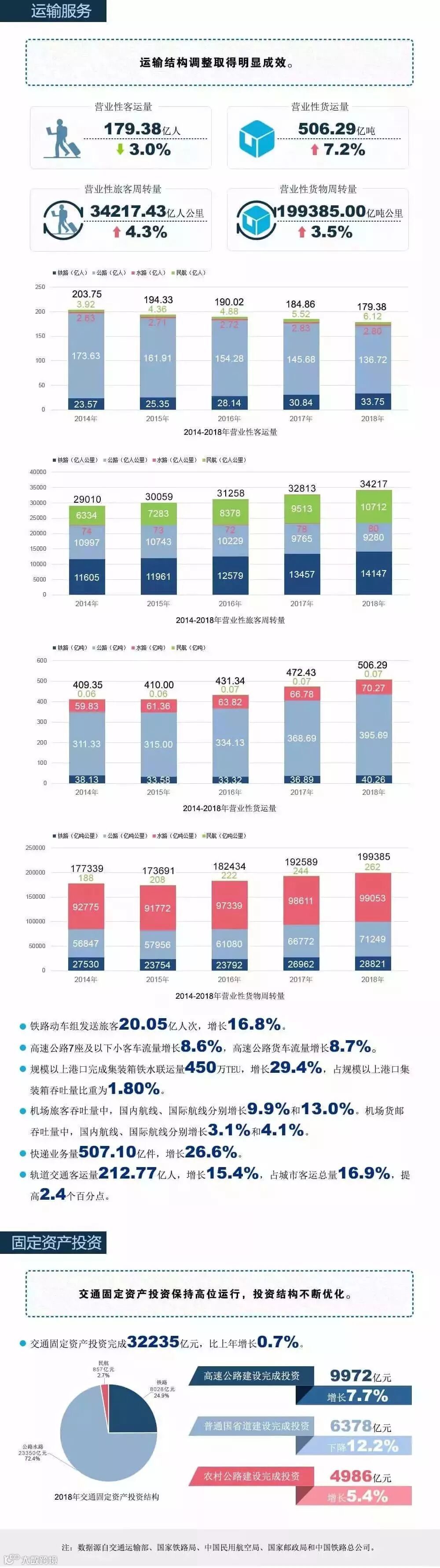 近日,交通运输部发布《2018年交通运输行业发展统计公报》,就基础设施、运输装备、运输服务、交通固定资产投资等领域重要数据作出统计。