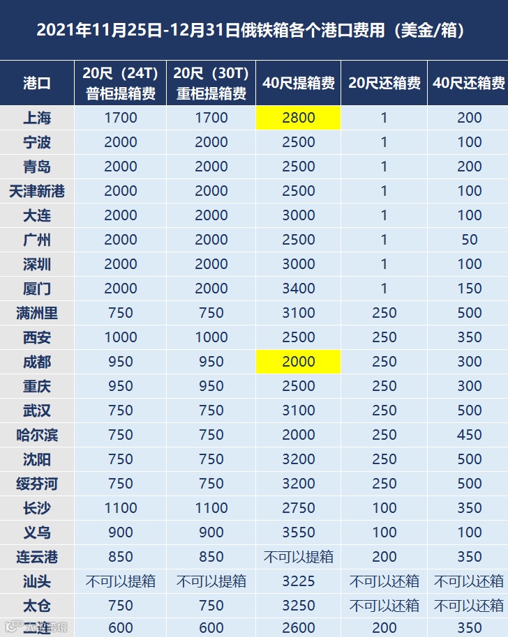 关于2021年11月俄铁箱提箱费变更的通知(二)