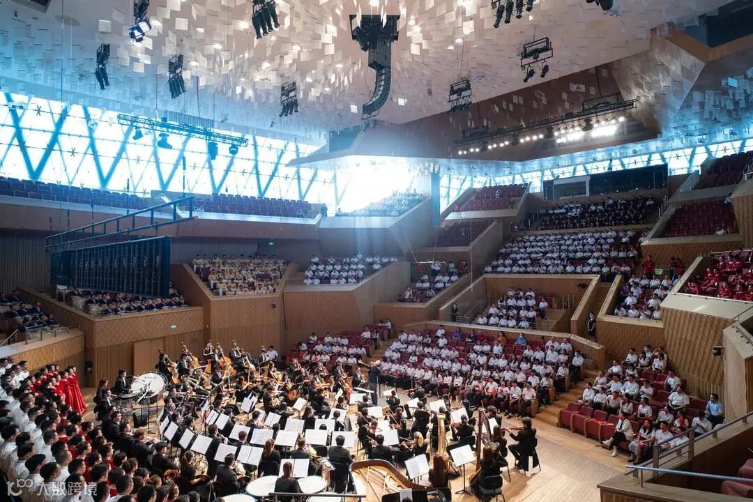 最后,全场观众共同唱响《没有共产党就没有新中国》,在激昂的歌声中,本场音乐会圆满落下帷幕。
