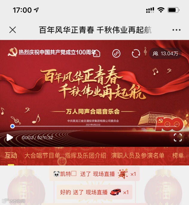 本场音乐会同时通过网络平台面向全网直播,各权属二级企业分别设置分会场同步观看,截至目前,本场音乐会共吸引了13万余人次观看。