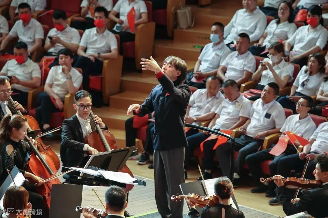 本场音乐会特别邀请到新中国第一支交响乐团——哈尔滨交响乐团常任指挥于学锋和乐团近90名优秀音乐家,全程为合唱团指挥、伴奏,共同演绎了赞党爱党颂党的视听盛宴。