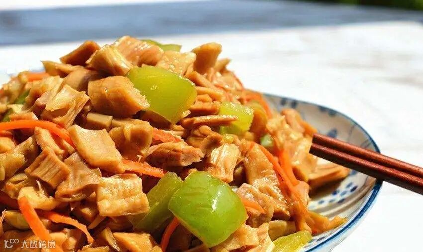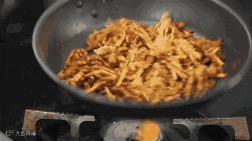 5、热锅倒油,加入白萝卜翻炒片刻,后将炸好的笋干放入翻炒;