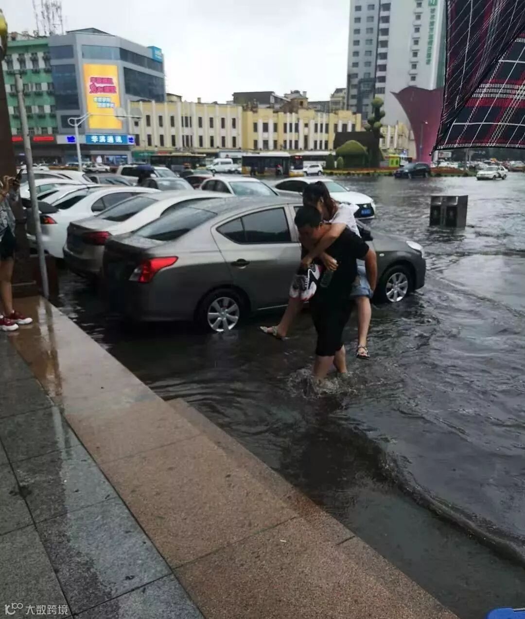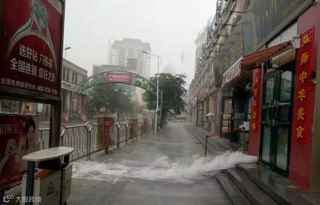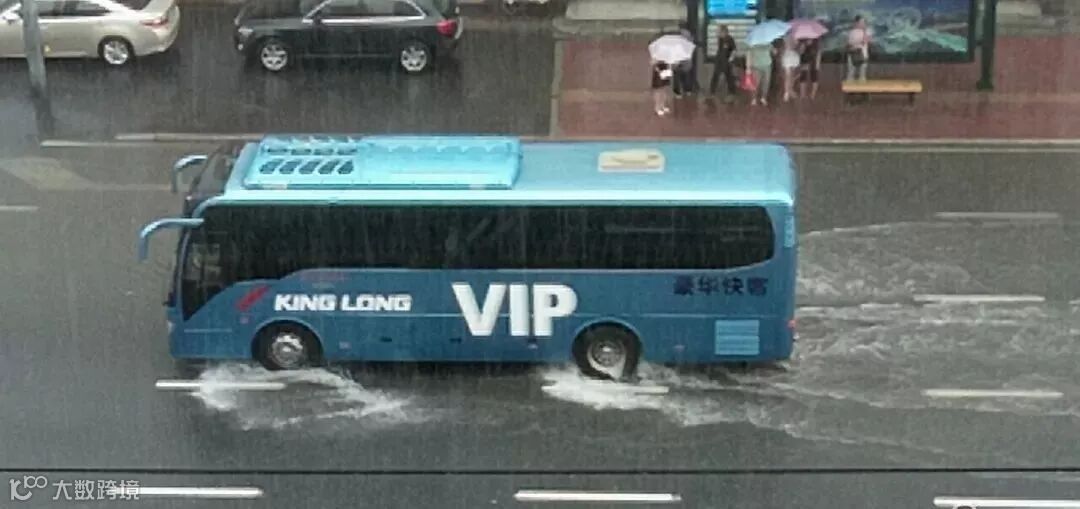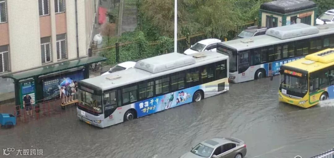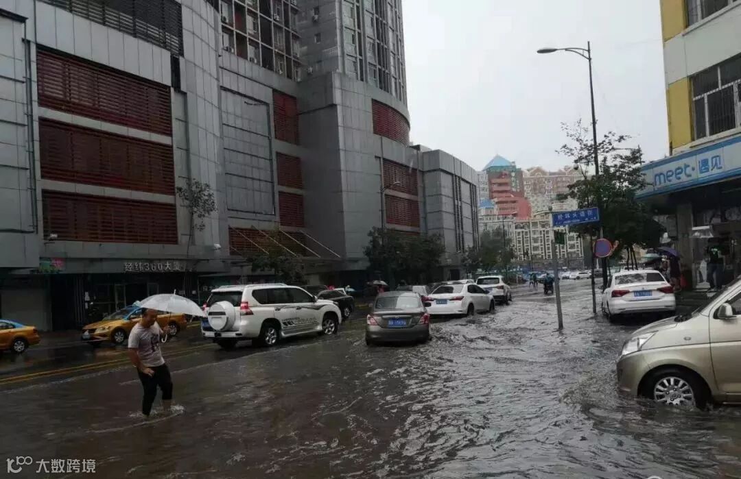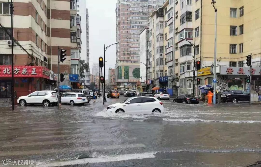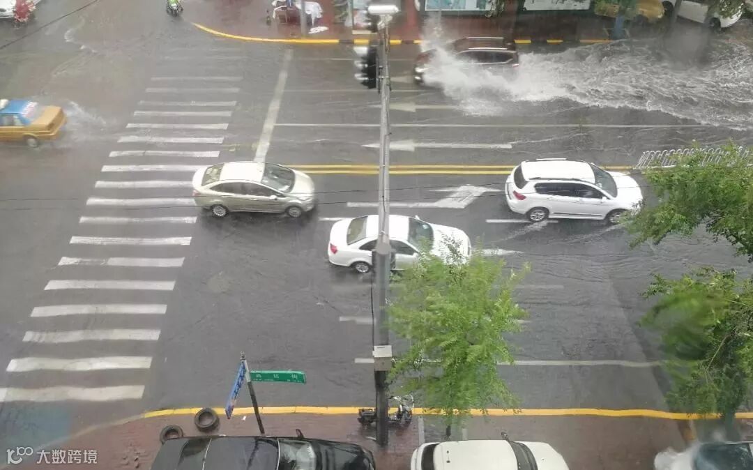 有些地势较低的路口,积水没过半个车轮了。
