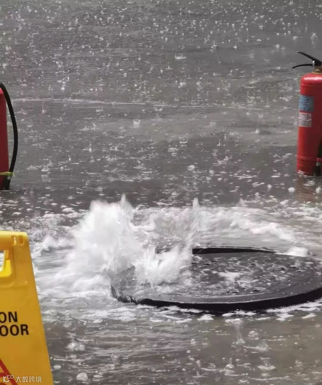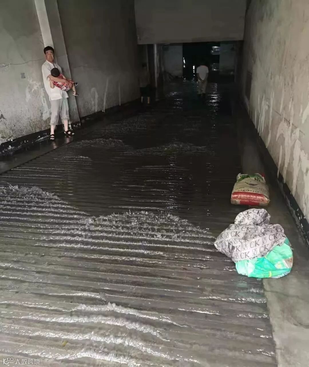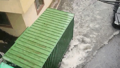 经纬头道街积水较深,倒灌进车库了