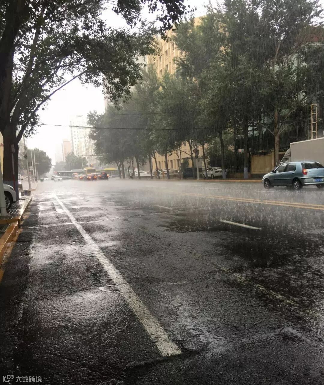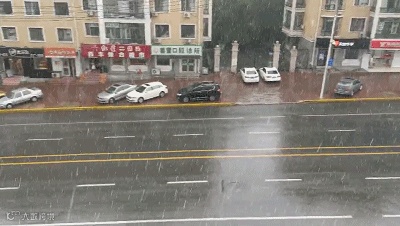 阵雨如约而至,15日13时30分左右,道里区降雨明显,雨势较急,新阳路部分路段形成积水。