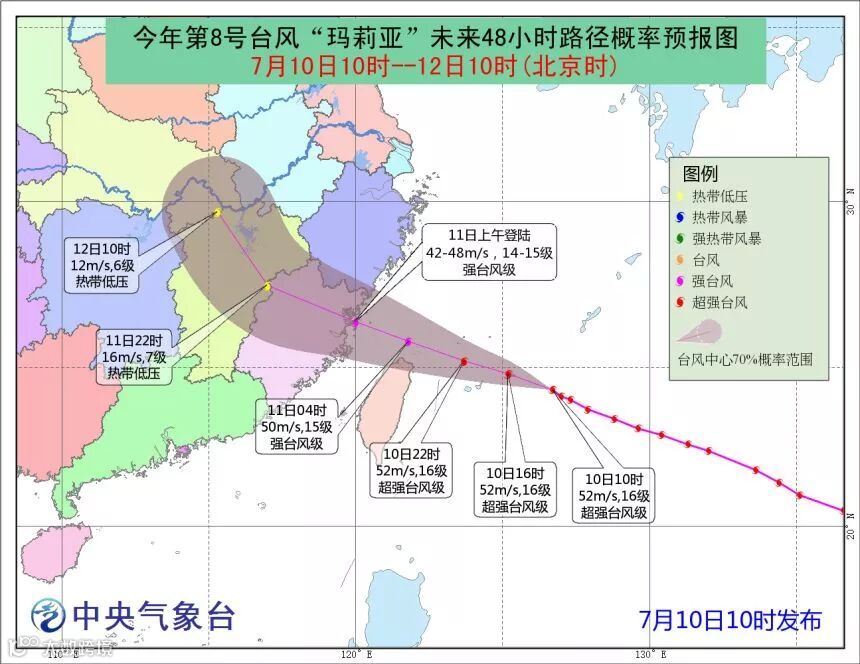 “玛莉亚”将是今年第一个登陆我国的强台风,预计今日上午在福建中部到浙江南部沿海登陆,登陆时为台风级或强台风级,破坏力巨大,登陆后会继续向西北方向移动,“玛莉亚”云系密实、雨量充沛,长江中下游地区刚经历一轮强降雨,部分区域短时间内将重复受灾,防御形势十分严峻。预计福建大部、江西中部、浙江东南部等地将出现大到暴雨,部分地区大暴雨或特大暴雨。