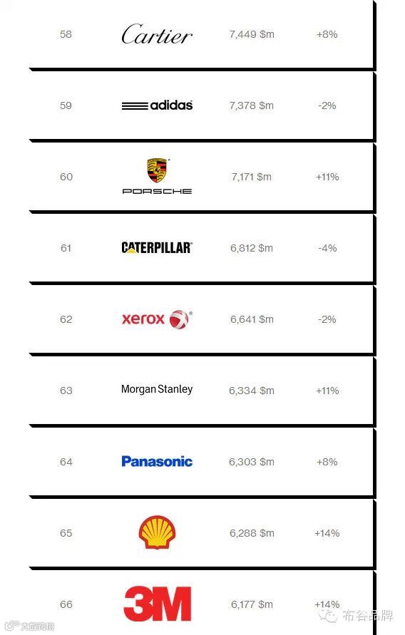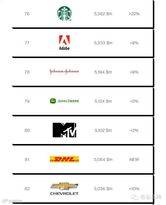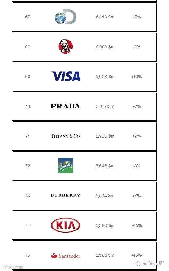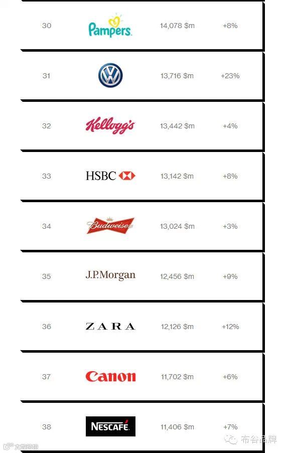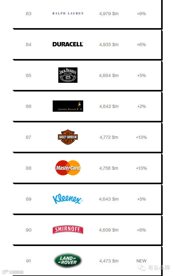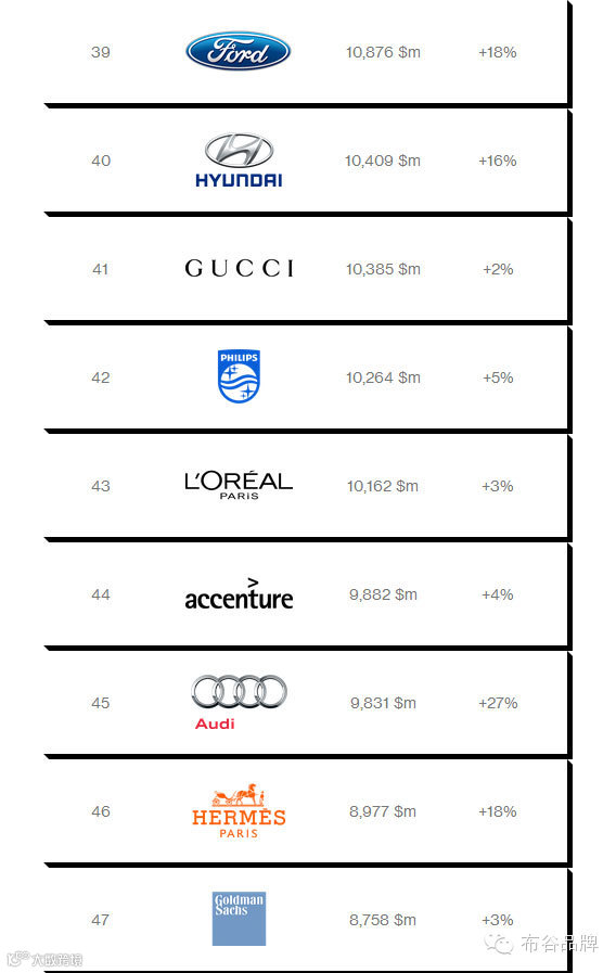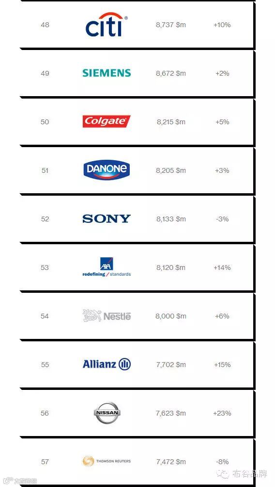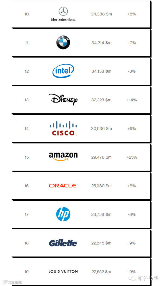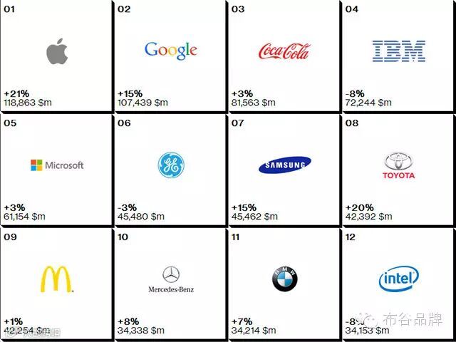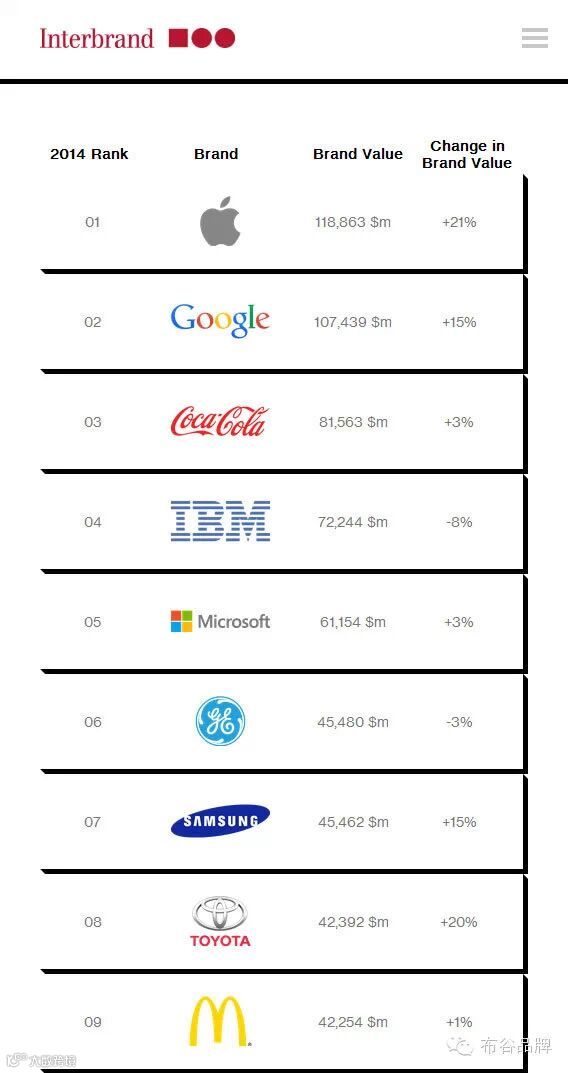 Interbrand 发布的2014最佳全球品牌榜单l纵向列表比较