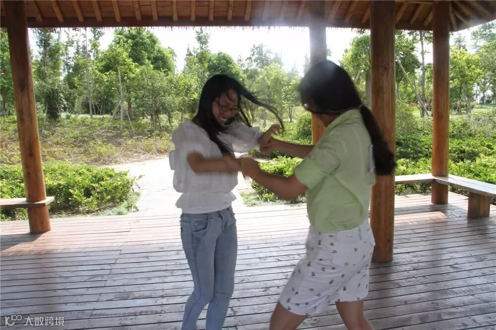 “你模仿这个,我模仿那个”,“不对不对,你脚前后放错了” 。