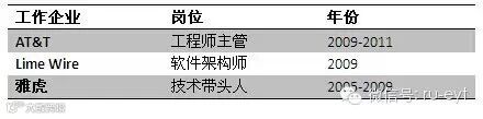 Danny在大学期间,仅在Alcan实习过,任软件优化工程师。毕业之后,他去了雅虎,此后又工作于Lime Wire和AT&T: