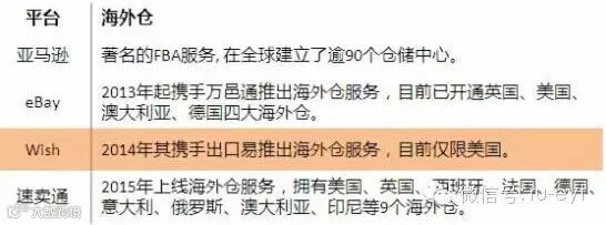 此外,Wish要想超越亚马逊、eBay、速卖通等平台,还需要在跨境物流方面深入布局。我们知道,跨境物流一直是跨境电商行业的一大痛点,海外仓被行业寄予厚望。我们通过调查发现,Wish在海外仓方面的布局要落后于其他平台。详细如下: