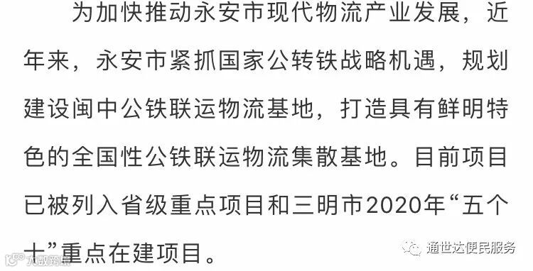 【最新消息】好消息!永安这里将打造全国性物流集散基地!
