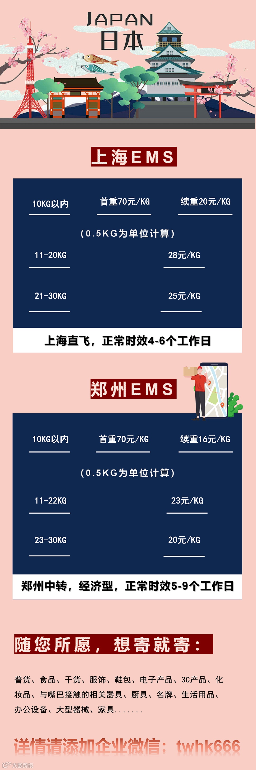 日本集运、新加坡集运、马来西亚集运、美国集运,台湾集运.......一手庄家,多条线路选择,通关率高,时效快。 台湾COD,东南亚COD,合作代发:台湾蝦皮、露天、奇摩等,日均出口量达30吨