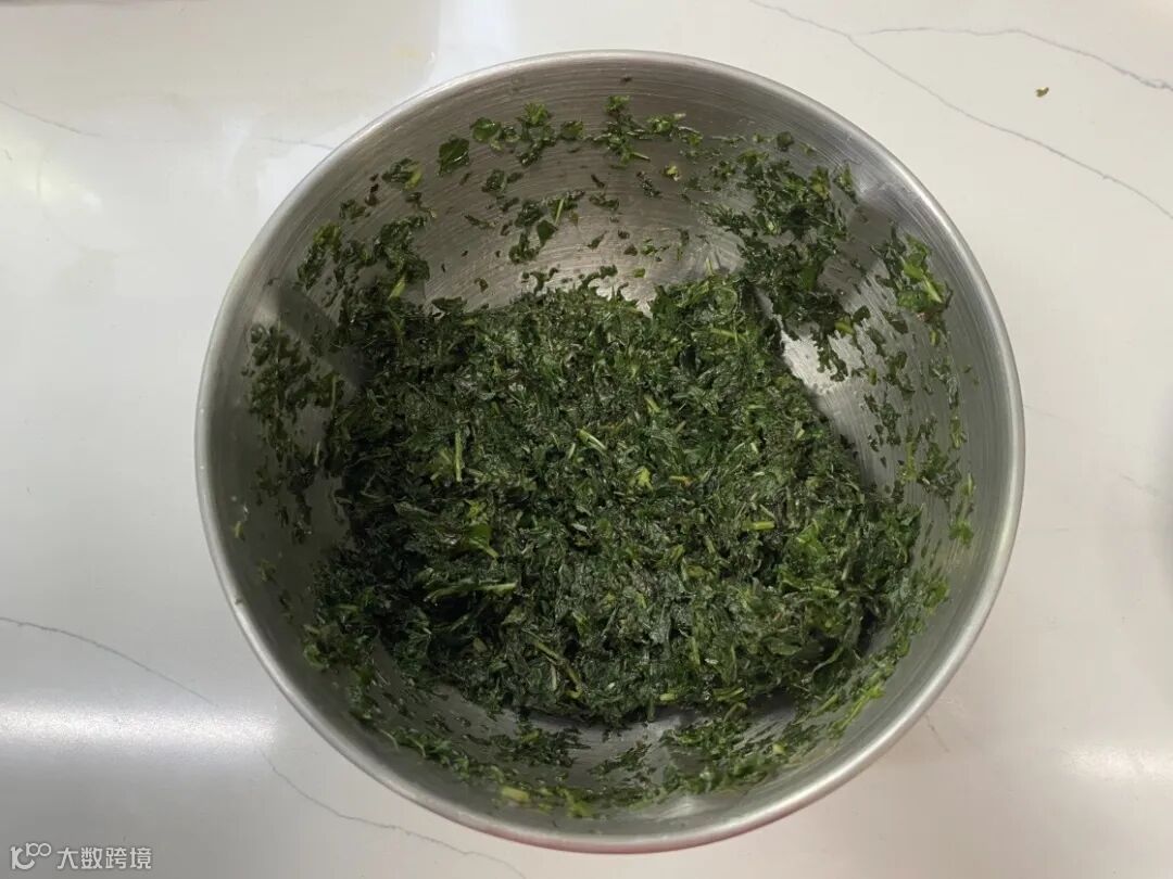 将艾草与薄荷洗净后晾干表面水分,晾干后放入搅拌机中,加入金银花搅碎。