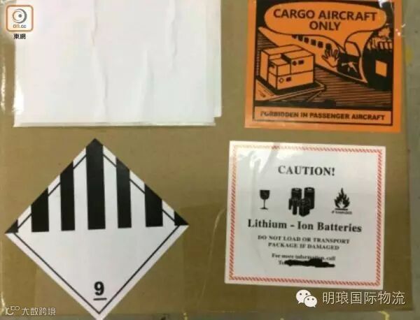 图:空运锂电池的装箱上,需贴上相关的危险品标签。