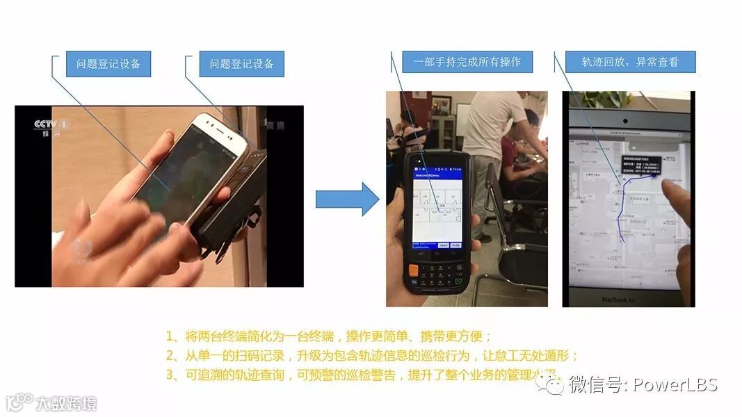 无独有偶,面对如消防检查、工厂安全巡视、楼宇巡更等业务过程中的早检查、漏检查、甚至不检查的问题,中科劲点公司借助室内定位技术为特殊行业的需求提供了整套的定位应用方案。在巡检点的设备上粘贴二维码,巡检人员手持扫描枪在巡检中按照操作手册依次扫描二维码完成巡检的记录,过程中发现问题直接在手持机上登记不需要再配套其他的手机或者终端,简化检查操作流程、降低巡检员的随身设备数量。巡检过程中,手持机自动启动定位程序实时回传定位结果到监管后台,后台可以匹配规划线路和轨迹来分析和预警违规行为。系统后台可以实时动态显示每个巡检员的位置信息,可以选择回放单个巡检员的巡检线路,可以预警违规的巡检行为,极大提升了设备巡检/巡更过程中的怠工问题,让涉及重大安全责任的维护工作在阳光下运行。