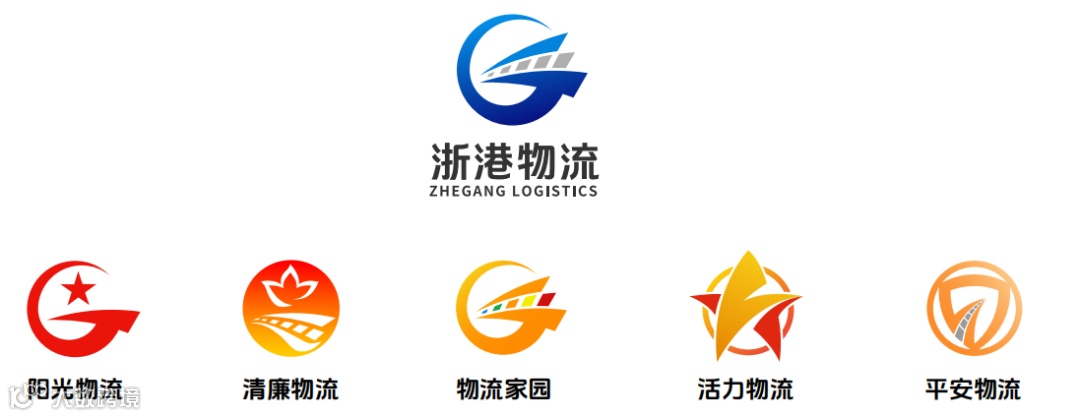 “浙港物流”LOGO设计赋予特殊寓意,巧妙融合“港”字中文首字母与“全球”英文首字母“G”,运用天蓝色与海湾蓝双色搭配,勾勒出海运、铁路、公路三种物流模式高效联动、链接全球的视觉意象。整体造型动感鲜明,呼应集装箱高效流转的现代物流节奏。