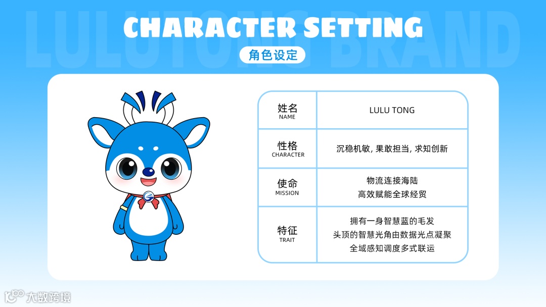 “浙港物流”文化体系深度融合物流集团生产经营特质,其IP形象“LULU TONG”以鹿为创意原型,谐音“路”,寓意物流通达四方、畅通无阻。形象设计融入物流行业的元素符号,一身纯净蓝色毛发,象征覆盖全球的物流网络;头顶闪烁的数据光点,凝成“智慧鹿角”,体现调度海、铁、公多式联运的“智慧大脑”;身披的鲜艳红披风,则传递出物流人风雨兼程、永不退缩的进取精神。