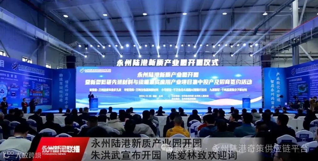 12月28日上午,永州陆港新质产业园开园暨新型低碳先进材料与终端集成应用产业项目集中投产及招商签约活动举行。市委书记朱洪武宣布产业园开园并见证集中投产仪式。市委副书记、市长陈爱林致欢迎词。市领导侯文、谢景林、刘厚、李天明、秦志军出席。市委常委、副市长、永州经开区党工委第一书记肖扬主持。