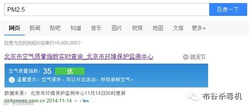 你在百度搜索PM2.5,这个指数并不能精确代表你生活区域的空气质量,所以说查看自己活动区附近监测站的测量结果更加适用于你个人。另外,如果各位对这一些列数字看的头大,建议只关注PM2.5单项 AQI数值即可,通过颜色表达的信息获取最为直接。