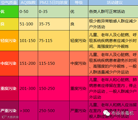 看到这里各位又该冒出疑问了,怎么又来了一个PM2.5浓度?事实上它与空气质量也是存在数值对应关系的,详情见下表。