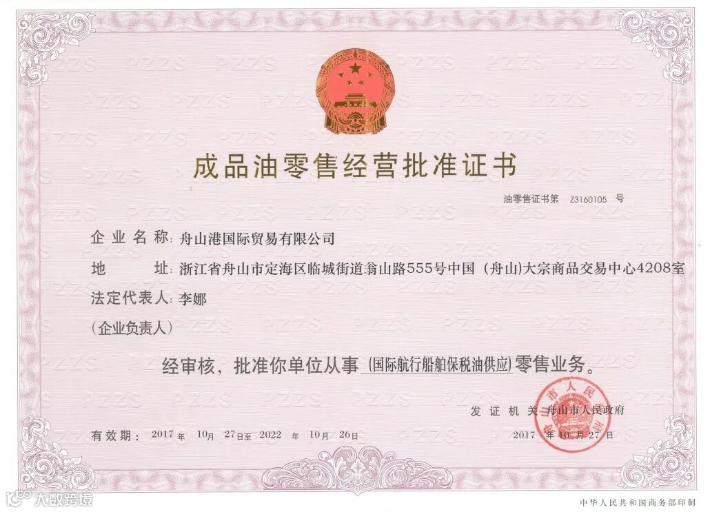 2年后,沈浩被借调到舟港国贸时,正赶上公司转型的关键期。那年,浙江省海港集团与舟山市政府签约保税燃料油项目,舟港国贸成为首批获自贸区保税油经营资质的企业。同年12月,舟港国贸组织“祥鸿3号”加注船为“海丰莱拉”轮完成687吨燃料油加注。