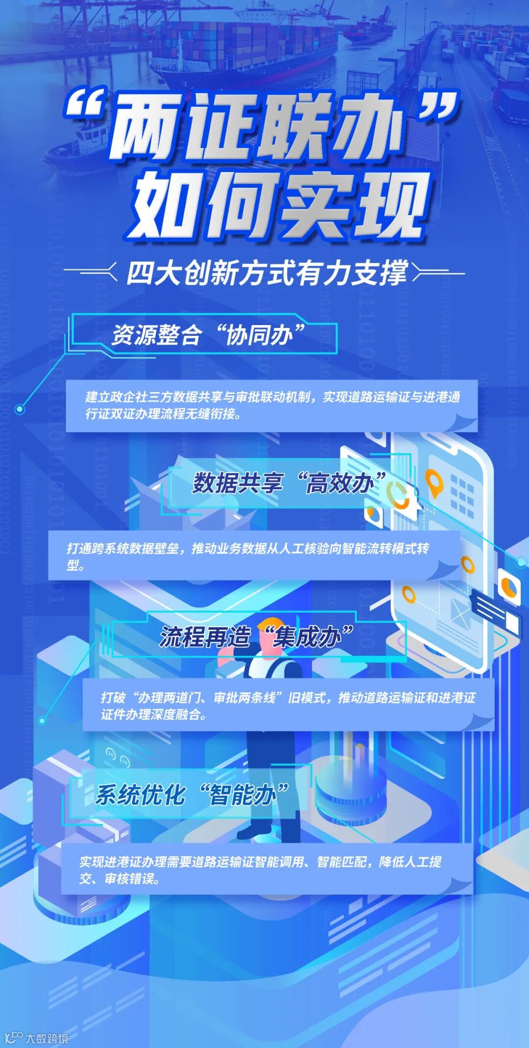 4月8日下午,从2025年全省交通运输政务服务暨增值化改革工作现场会上获悉,道路运输证和进港证“两证联办”改革成果在浙江全省落地应用,通过全省道路运输证审批系统与易港通进港证办理平台的数据秒级传输,实现“进港证宁波一地办理,全省港区通行”,为全省集卡运力资源的调度协同、强化多式联运通道应急保障能力提供有效支撑。