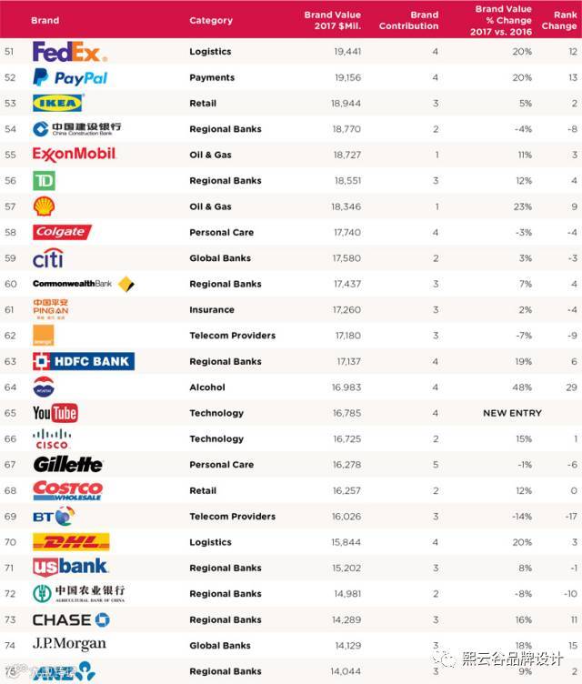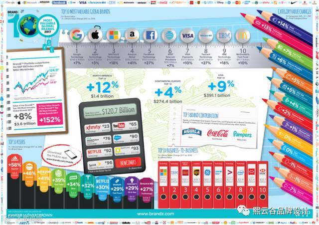 WPP和凯度华通明略发布了《2017年BrandZ™最具价值全球品牌100强》排名,结果显示,品牌价值位于前五位的均为科技巨头,分别为谷歌、苹果、微软、亚马逊和Facebook 。
