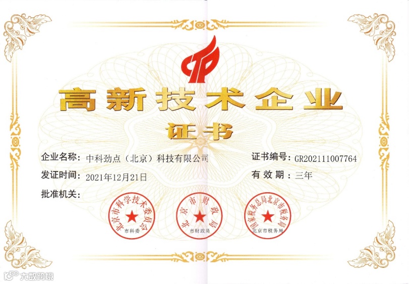 国家高新技术企业认定须经过严格的企业资质测评和审批程序,需要在核心自主知识产权、科技成果转化能力、研究开发的组织管理水平、业务成长性和人才结构等指标方面层层筛选,最后进行综合评估和认定。中科劲点凭借过硬的技术研发实力再次荣获高新技术企业证书,这标志着我司在研发和创新方面得到国家相关部门的肯定与认可。