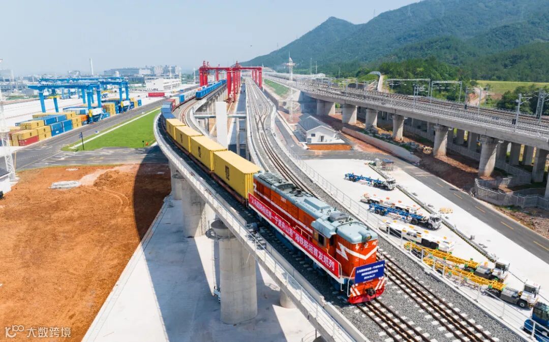 6月27日下午,随着副省长柯吉欣宣布开港,一列满载光伏板、日用百货等100个标准集装箱货物的81114次班列从浙江义乌苏溪集装箱办理站鸣笛启程,驶向世界第一大港宁波舟山港。至此国内首个混行模式自动驾驶试验铁路场站——苏溪集装箱办理站开通启用,义乌(苏溪)国际枢纽港开港运营,也标志着“浙江e港通”全国首个“三化两全”示范标杆站点正式落地,实现智能化、可视化、预警化,信息全程管控、全链追踪。