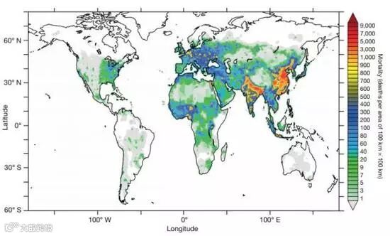 如果空气污染仍在持续,未来数十年由空气污染导致的过早死亡可能会愈演愈烈。图片来自Lelieveld et al。, 2015。