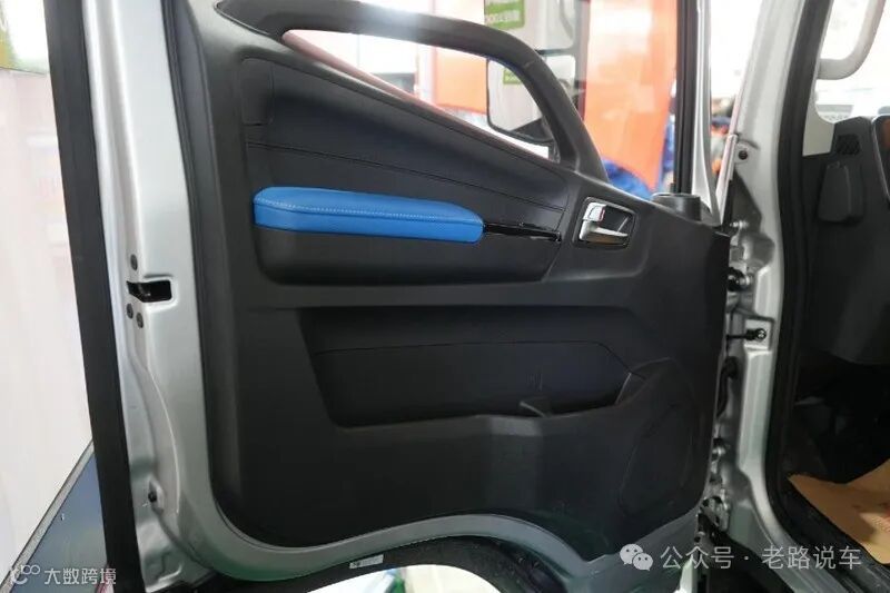 车门板臂托处采用蓝色软质材料覆盖,强调新能源属性的同时,也带来了更舒适的触感。